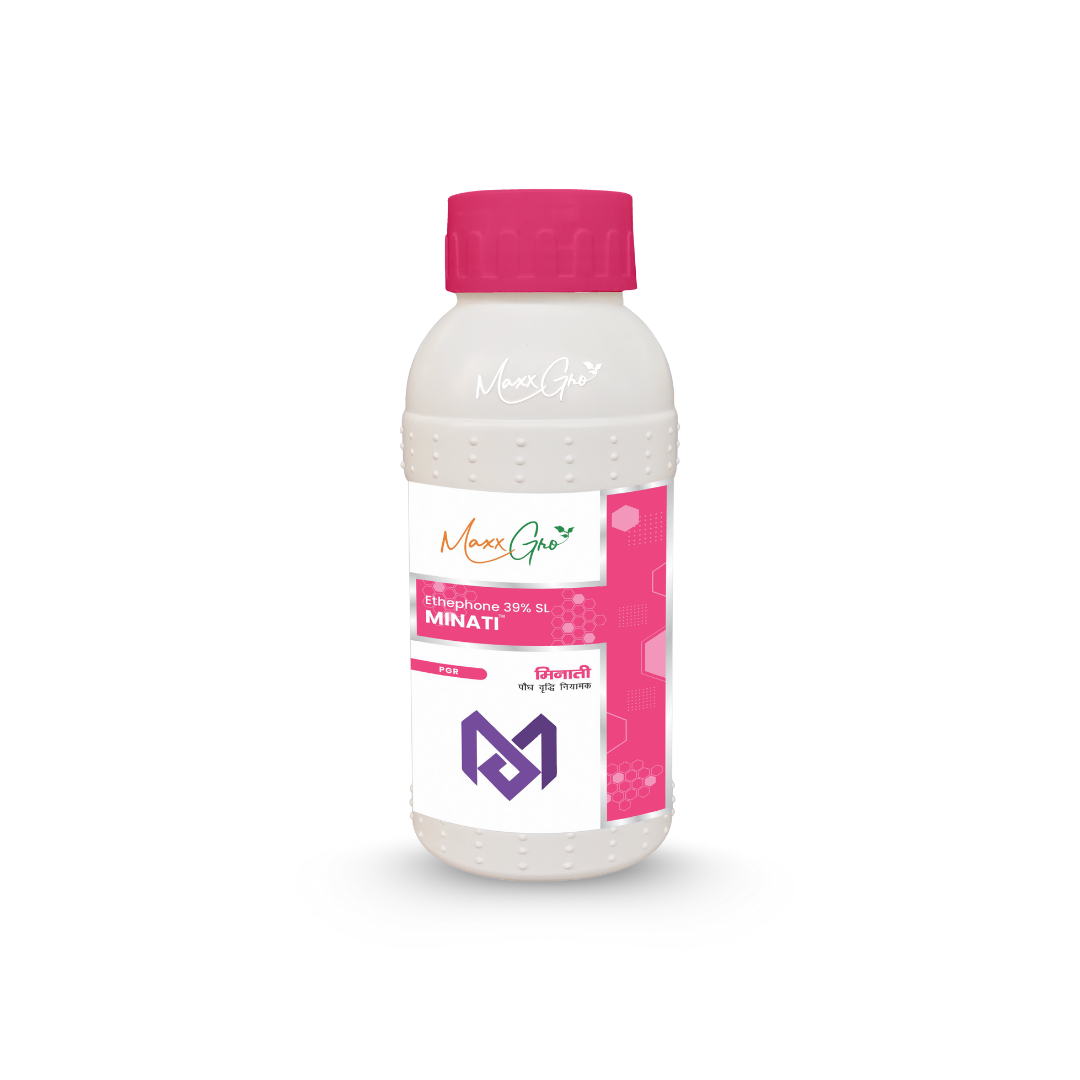 Minati is a highly efficient plant growth regulator formulated with Ethephone 39% SL, developed by MaxxGro Agrology Limited. It plays a vital role in improving fruit ripening, enhancing color development, and ensuring uniform maturity across crops. Minati helps farmers achieve timely harvesting and better-quality produce, thereby increasing overall profitability.